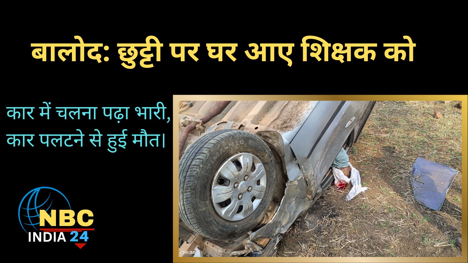 छत्तीसगढ़/ बालोद/ छुट्टी में घर आये शिक्षक को कार चलाना भारी पड़ गया. खाई में कार के गिरने से मौके पर शिक्षक की मौत हो गया. जानकारी के अनुसार बास्तानार ब्लॉक में पदस्थ शिक्षक अजित आर्य उम्र 41 वर्ष छुट्टी पर अपने घर बालोद जिले के दल्लीराजहरा थाना क्षेत्र नगर पंचायत चिखलाकसा आए हुए थे. जो सुबह अपनी cg17c2888 कार लेकर अकेले घूमने के लिए निकला था तभी अनियंत्रित होकर कार खेत मे जा गिरी जिससे कार के परखच्चे उड़ गए और शिक्षक को गम्भीर चोट लगने से मौके पर मौत हो गई।