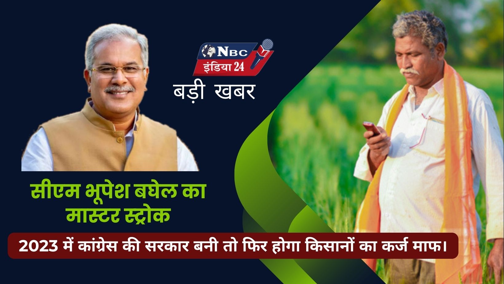 छत्तीसगढ़/ चुनावी समर के बीच एक बार फिर छत्तीसगढ़ के मुख्यमंत्री भूपेश बघेल का मास्टर स्ट्रोक 2018 के विधानसभा चुनाव में सबसे बड़ा मास्टर स्टॉक किसानों की कर्ज माफी को 2023 के विधानसभा चुनाव में दोहरा दिया है उन्होंने छत्तीसगढ़ में कांग्रेस की सरकार बनने पर एक बार फिर से कर्ज माफी की घोषणा की है।