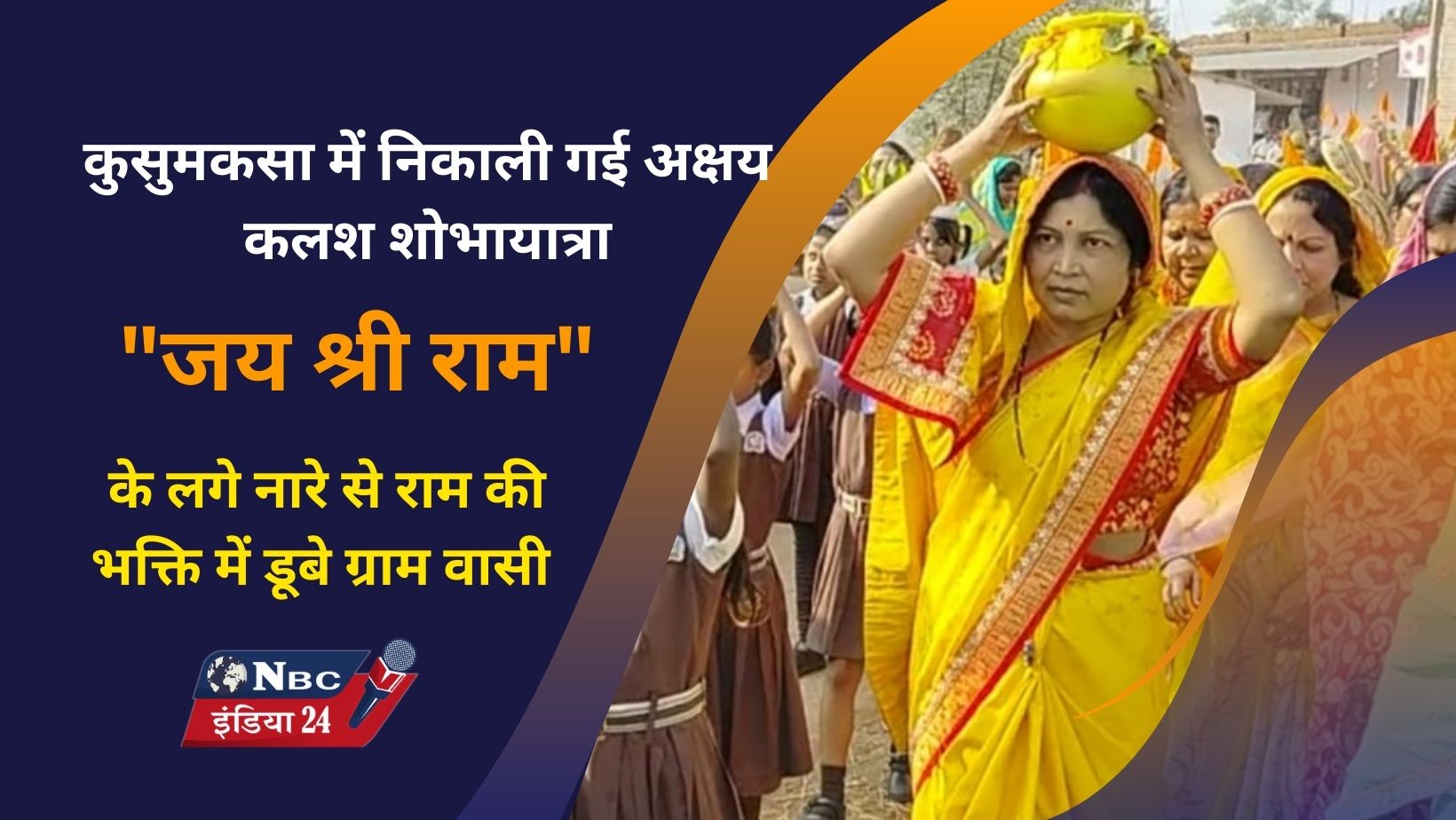 ग्राम कुसुमकसा में भी इस अवसर पर बाजे गाजे के साथ भव्य अक्षत कलश यात्रा निकाली गई जहाँ ग्रामीण बेहद उत्साह के साथ इसमे हिस्सा ले रहे यह यात्रा दुर्गा मंदिर से प्रारंभ होकर नगर के विभिन्न प्रमुख मार्गो से होते हुए वापस मंदिर पहुंची यात्रा में बड़ी संख्या में सरस्वती शिशु मंदिर के बच्चे व ग्रामीण महिलाओं ने सिर पर कलश रखकर यात्रा में सम्मिलित हुई वही यात्रा के दौरान जगह जगह पूजित अक्षत कलश का स्वागत करते हुए पूजा किए इस दौरान समूचे क्षेत्र में भक्तिमय वातावरण बना रहा।