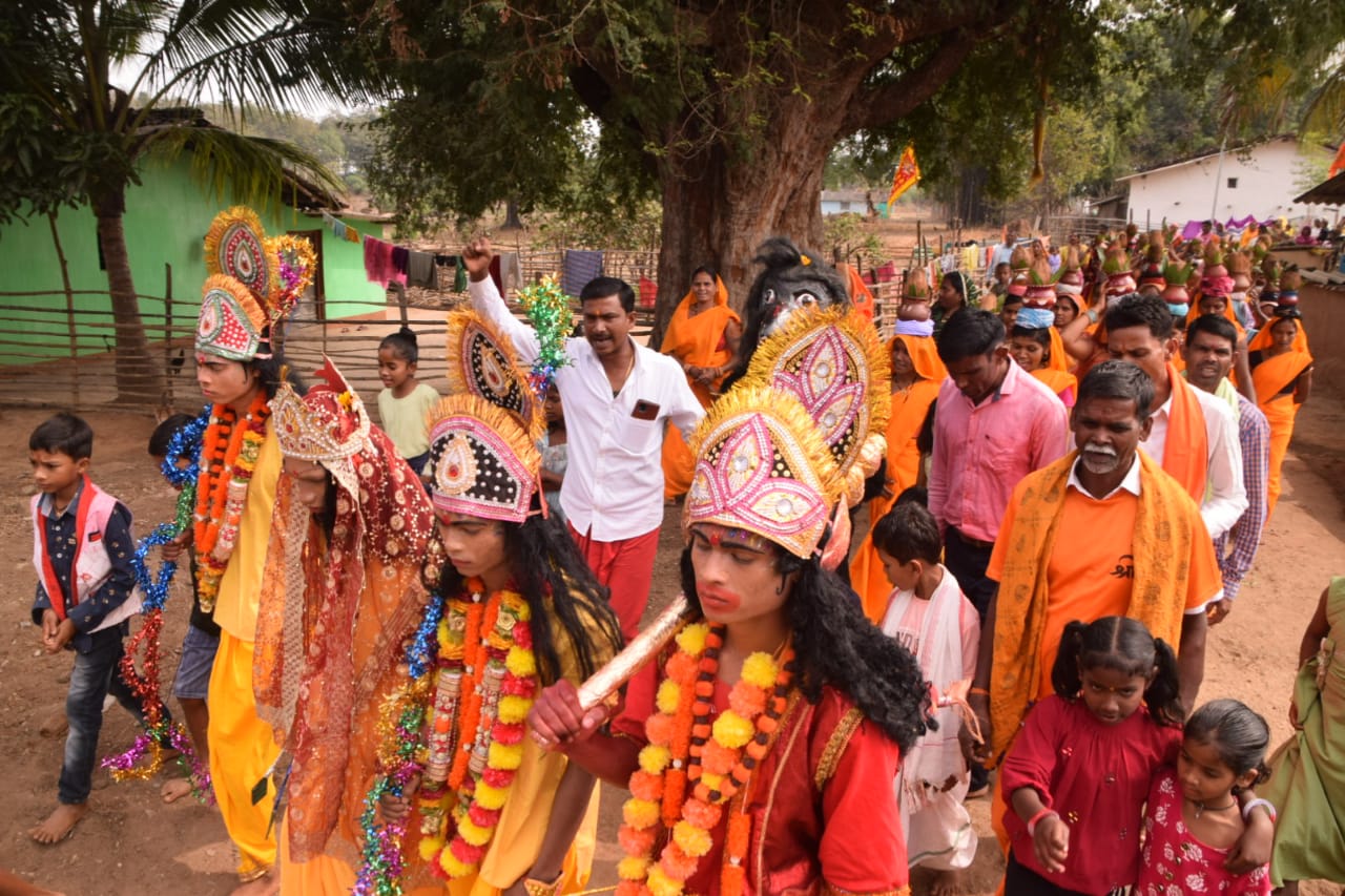 शैलेश सेंगर बिट्टू / दंतेवाड़ा / जिले के दूरस्थ इलाके पालनार के पेंटा पारा में भगवान श्रीराम लला प्राण प्रतिष्ठा समारोह को लेकर अभूतपूर्व उत्साह का माहौल रहा। गांव के शिव मंदिर प्रांगण में पूजा अर्चना कर शोभायात्रा निकाली गई। इसमें बड़ी संख्या में महिलाएं, बच्चे, युवा, बुजुर्ग शामिल हुए। गाँव की रामायण मंडली के कलाकार राम, लक्ष्मण, सीता, जामवंत, हनुमान आदि की वेशभूषा में साथ चल रहे थे।