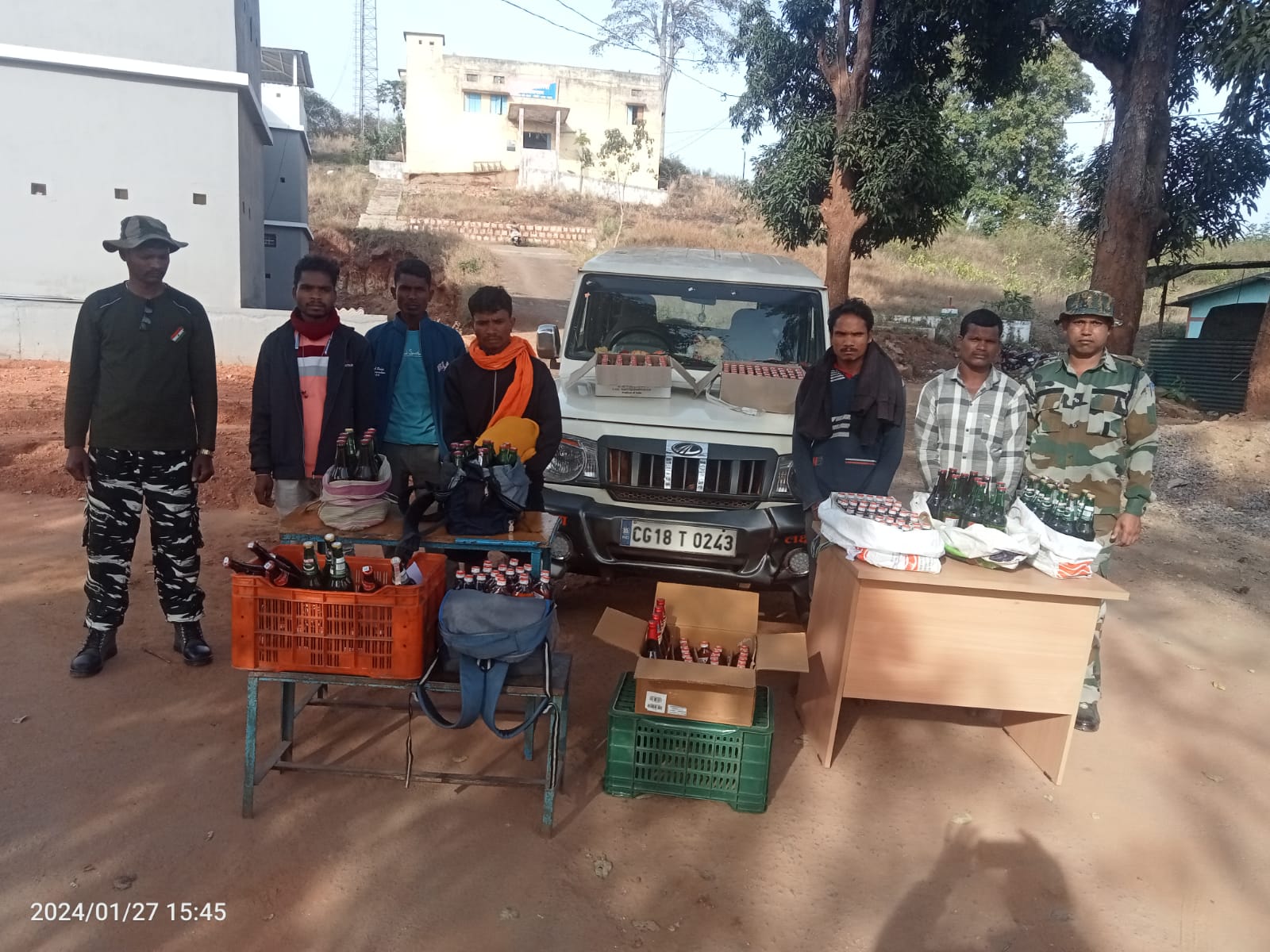 1.आरोपी बामन गावड़े पिता सुखराम गावड़े उम्र 26 वर्ष ग्राम बास्तानार थाना कोड़ेनार जिला बस्तर के कब्जे से 100 नग पौआ अंग्रेजी गोवा व्हिष्की (मध्य प्रदेश) मात्रा 18.000 balk लीटर, 17 नग सिम्बा बियर मात्रा 11.050 balk लीटर,11नग बियर हंटर कंपनी का मात्रा 7.150 balk लीटर कुल मात्रा 36.200 balk लीटर, कुल कीमती 16880रूपये एवम एक बोलेरो वाहन CG 18 T 0243 कीमत करीबन 3लाख 50 हजार रुपये।