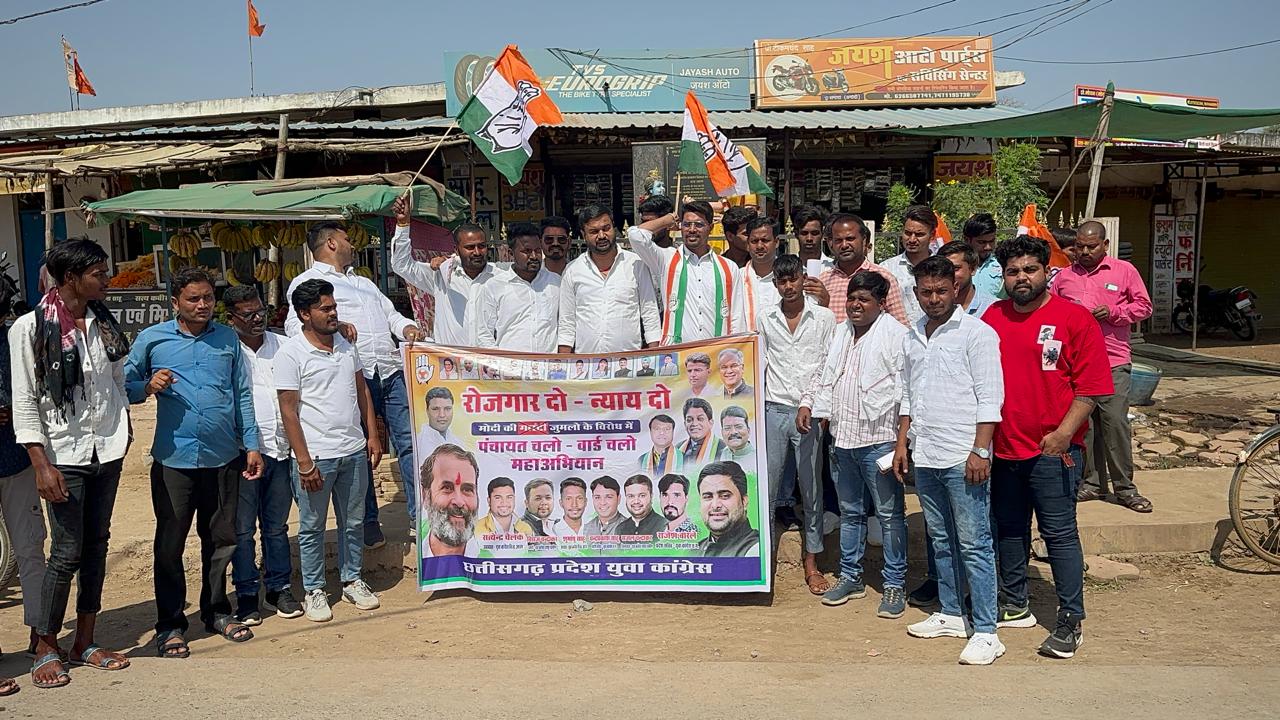 8 सवालो को लेकर आज छत्तीसगढ़ प्रदेश कांग्रेस कमेटी द्वारा ग्राम समोदा में “रोजगार दो न्याय दो” मुहिम के तहत पंचायत चलो वार्ड चलो कार्यक्रम की हुई शुरुवात