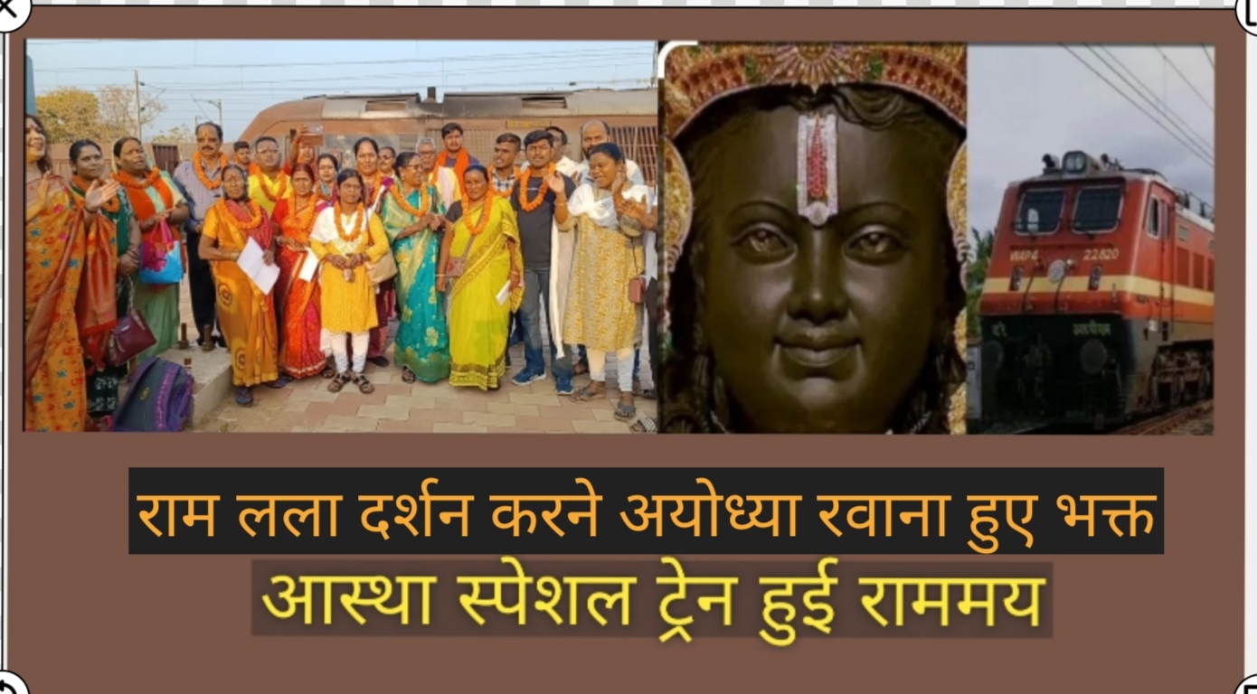 आज भानुप्रतापपुर से अयोध्या के लिए चलने वाले आस्था स्पेशल ट्रेन के माध्यम से तीन दिवसीय यात्रा में दल्ली राजहरा के 23 सहित बालोद जिलेभर 150 अधिक श्रद्धालुओं की दल मर्यादा पुरुषोत्तम भगवान श्री राम की नगरी अयोध्या में नवनिर्मित ऐतिहासिक भगवान राम लला की मंदिर के दर्शन के लिए गए l इन श्रद्धालुओं को शुभकामनाएं देने भारतीय जनता पार्टी के मंडल अध्यक्ष राकेश द्विवेदी विश्व हिंदू परिषद के उपाध्यक्ष निलेश श्रीवास्तव भारतीय जनता पार्टी के महामंत्री महेंद्र सिंह महामंत्री मदन मायती जनार्दन सिंगरोला सुजीत झा रानू नंदा पसीने उषा साहू सहित दल्ली राजहरा के बहुत से व्यक्ति पहुंचे थे l मंडल अध्यक्ष राकेश द्विवेदी ने सभी श्रद्धालु यात्रियों को हार पहना कर उनका स्वागत किया तथा सुखद यात्रा की कामना की l दल्ली राजहरा से अयोध्या राम लला दर्शन के लिए जाने वाले यात्रियों में से अंजू साहू ने कहा कि हमारा यह सुखद सौभाग्य है कि हम हमारे आराध्य मर्यादा पुरुषोत्तम भगवान राम के दर्शन करने अयोध्या जा रहे हैं l
