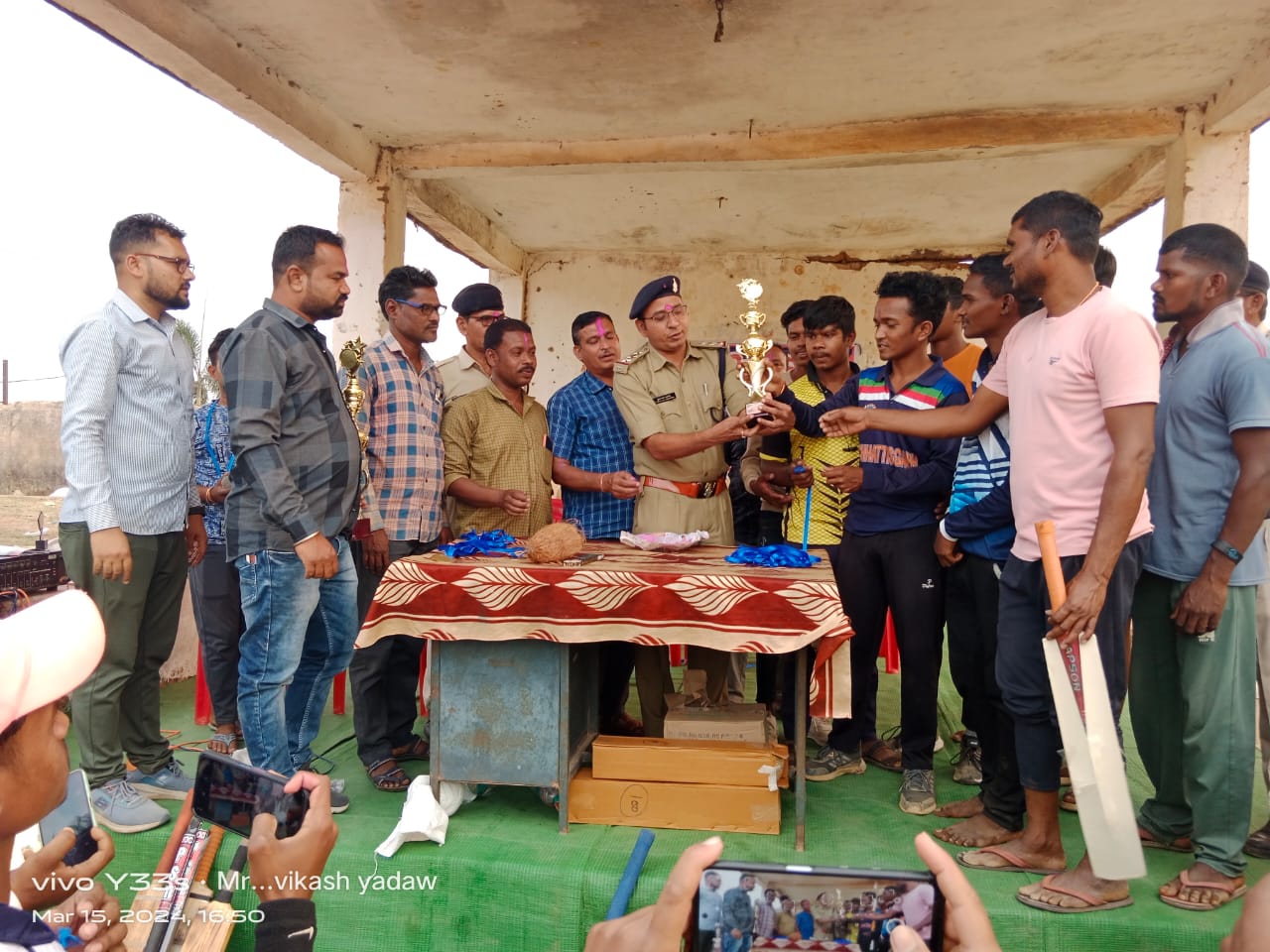 थाना प्रभारी नगरी ने कहा इस तरह के आयोजन से पुलिस एवं जनता के बीच संबंध बनता है पुलिस हमेशा जनता के साथ है इसका आभास जनता को सदैव होना चाहिए, खेल एक बेहतर जरिया और इसका अच्छा प्रतिसाद भी अब तक मिला है,उन्होनें खिलाड़ियों को आश्वासन दिया कि किसी प्रकार की खेलकूद में समस्या नहीं होगी।इस अवसर पर थाना प्रभारी नगरी निरी.टुमन लाल डडसेना,प्रआर.ईशु साहू, आर.अवध पैकरा, हेमलाल ध्रुव,डीआरजी. नगरी एवं स्टॉफ एवं उमेश साहू, प्रदीप सोन,लिलेश्वर पटेल,त्रिलोक प्रजापति एवं क्रिकेट प्रतिभागी सहित ग्रामवासी अधिक संख्या में उपस्थित थे।