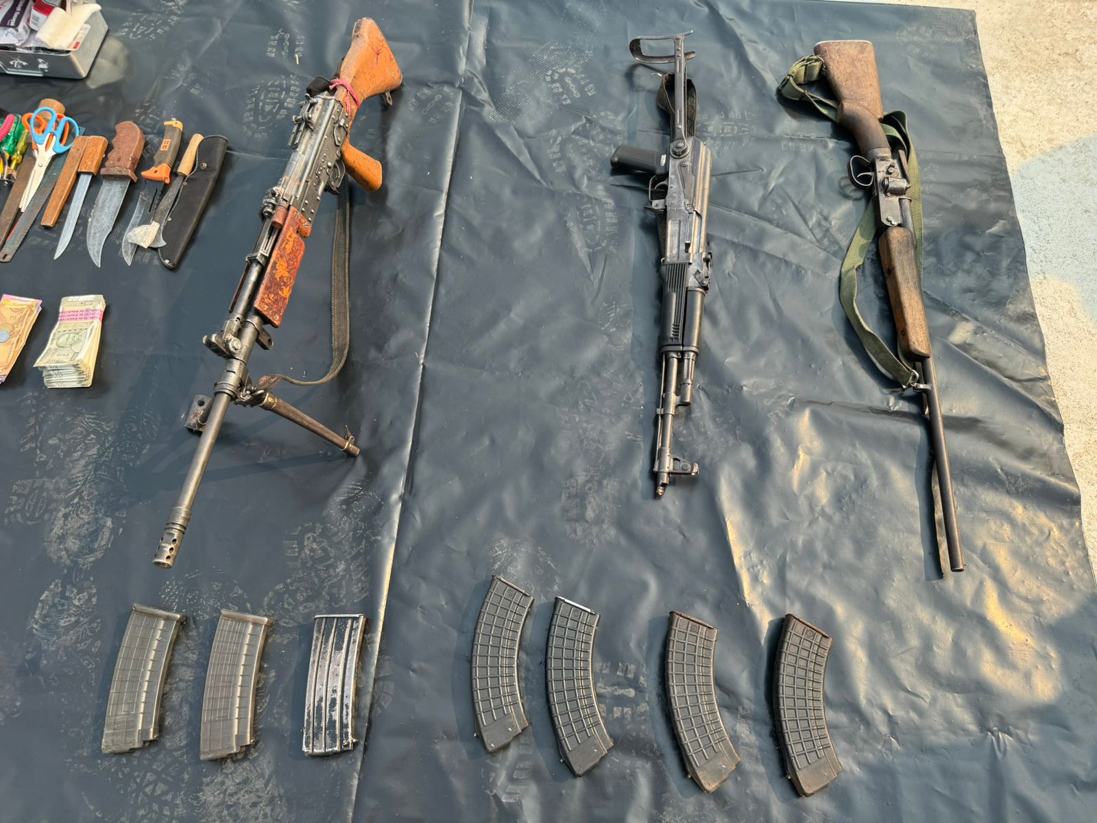 घंटो मुठभेड़ में सर्चिंग के दौरान आधुनिक हथियार और दैनिक उपयोगी सामग्री बरामद