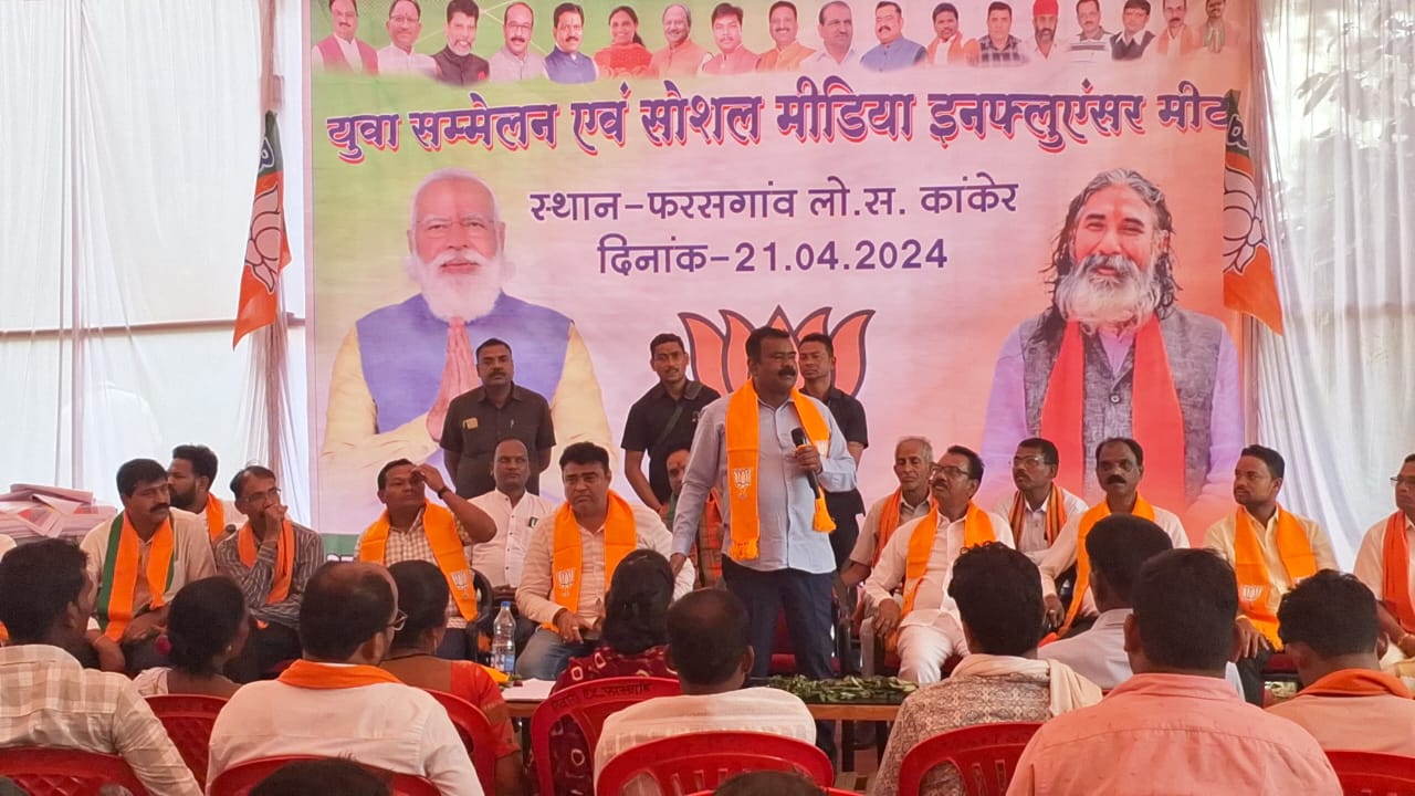 विजय साहू कोंडागांव /फरसगांव / भारतीय जनता पार्टी के द्वारा लोकसभा चुनाव को लेकर 21अप्रैल रविवार को नगर पंचायत फरसगांव के झूलनाडीही में युवा मोर्चा जिलाध्यक्ष प्रशान्त पात्र और उपाध्यक्ष वीरेंद्र बघेल के नेतृत्व में युवा सम्मेलन एवम सोसल मीडिया इन्फ्लूएंसर मीट कार्यक्रम का आयोजन किया।