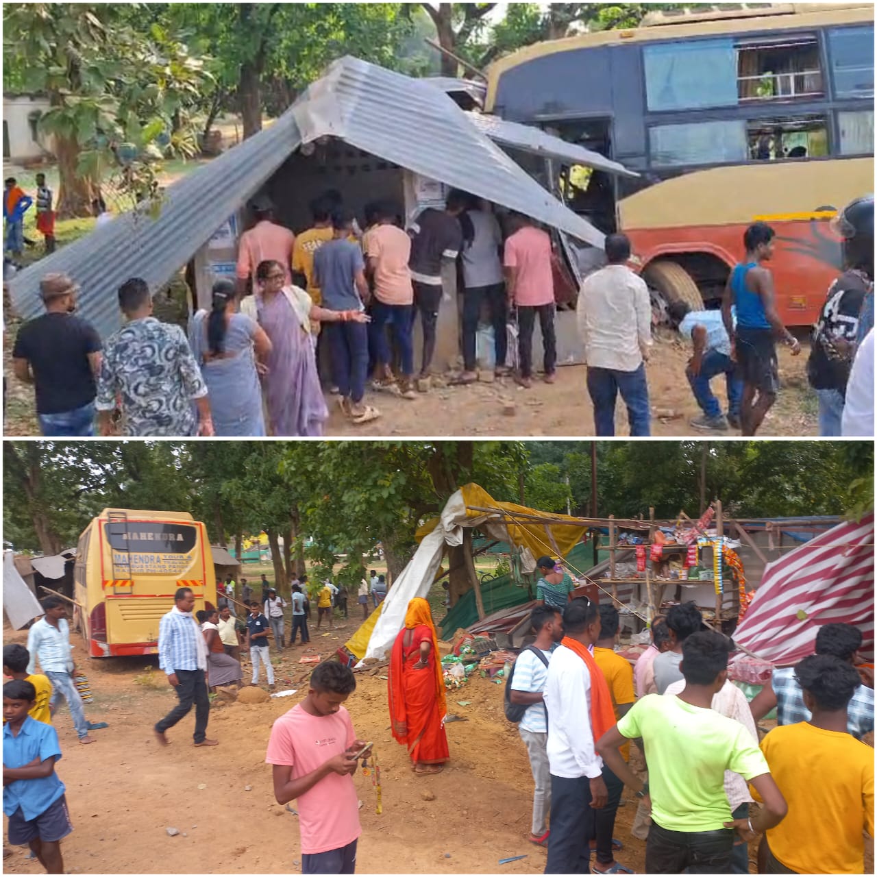 जिसमें रायपुर से जगदलपुर की ओर सवारी भर कर जा रही महिंद्रा बस का अचानक से सामने का टायर फटने के कारण बस अनियंत्रित होकर सड़क से नीचे उतर गई, और पोल्ट्री फार्म में जा घुसी है। इस घटना में ड्राइवर और कंडक्टर की मौके पर ही मौत हो गई है ।