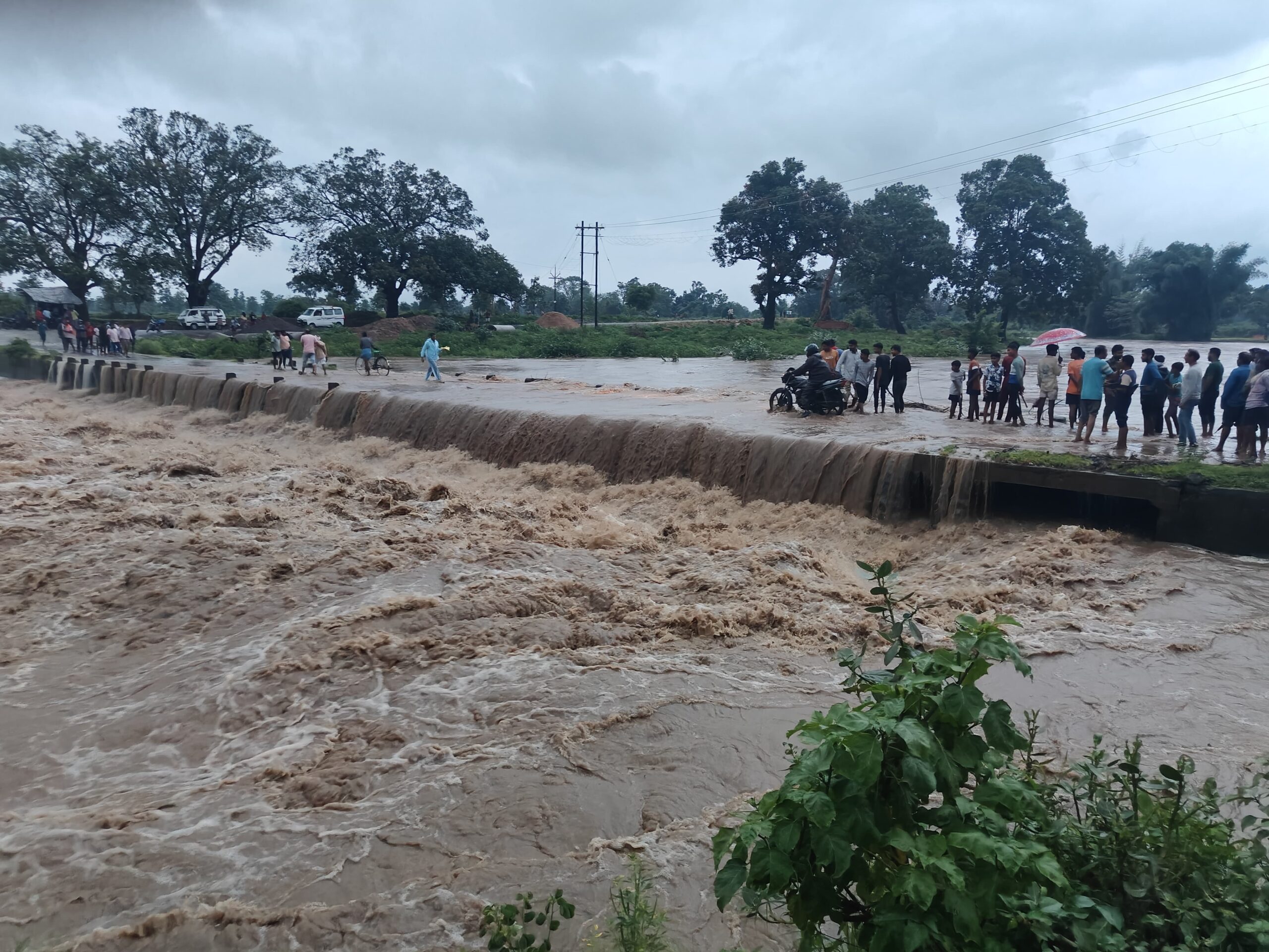धर्मेंद्र् यादव धमतरी @ नगरी के ग्राम घटुला के पूल में भारी बारिश के चलते पूल के ऊपर से जल स्तर भड़ने के कारण राह में अवरुद्ध आ गया l नदी उफान ने होने कारण गंभीर हादसा हो सकता है।बोरई से नगरी मार्ग में भारी बारिश के चलते बाढ़ आ गया है।