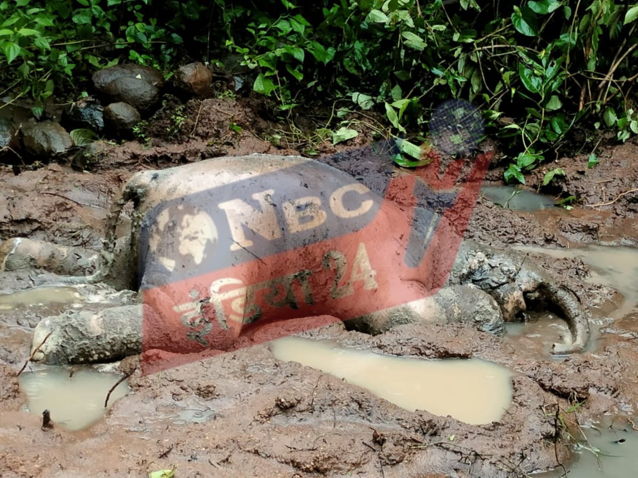 ब्रेकिंग नगरी@चंदनबाहरा के जंगल में हाथी के नन्हें शावक की मौत.जंगल में नाला किनारे दलदल में मिला शव.