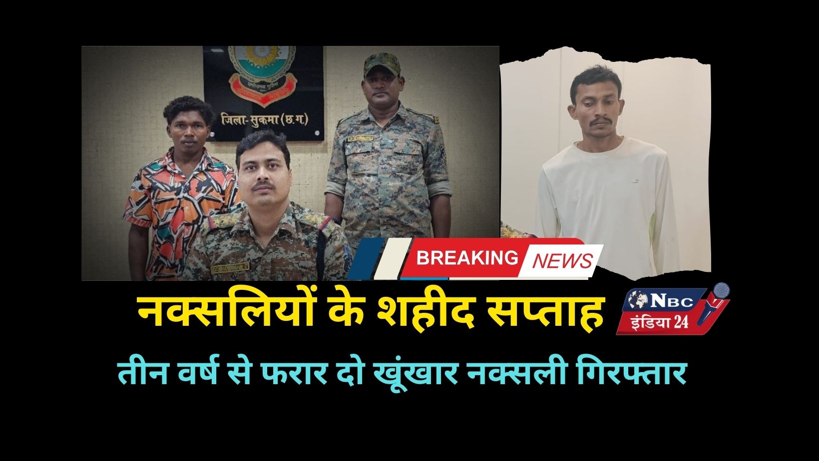 सुकमा पुलिस को मिली बड़ी सफलता नक्सलियों के शहीद सप्ताह में तीन वर्ष से फरार दो खूंखार नक्सली को जवानों ने किया गिरफ्तार