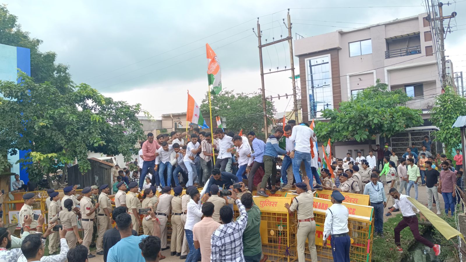 धमतरी @ बलौदा बाजार हिंसा कांड में भिलाई विधायक देवेंद्र यादव की गिरफ्तारी के बाद प्रदेश भर में कांग्रेस द्वारा विरोध का सिलसिला चल रहा है और देवेंद्र यादव की इस गिरफ्तारी को द्वेषपूर्ण करार देते हुए लगातार विरोध प्रदर्शन कर रही है।जिले में एनएसयूआई और युवा कांग्रेस के संयुक्त तत्वाधान में सैंकड़ों कार्यकर्ताओ ने जेल भरो आंदोलन कर भाजपा सरकार के खिलाफ विरोध प्रदर्शन किया इस दौरान 150 से अधिक युवाओं ने गिरफ्तारी दी है। इस दौरान युवा कांग्रेस और पुलिस के बीच झूमाझटकी भी हुई।