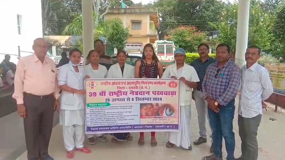 यह राष्ट्रीय 39 वाँ नेत्रदान पखवाड़ा का शुभारम्भ प्रति वर्ष के भाती 25 अगस्त से शुरू हुआ है बता दें इसकी अंतिम तिथि 8 सितम्बर है।मुख्य चिकित्सा एवं स्वस्थ अधिकारी डॉ यूएल कौशिक, अंधत्व जिला नोडल अधिकारी डॉ जे एस खालसा नेत्र विशेषज्ञ के मार्ग दर्शन मे यह पखवाड़ा ब्लॉक स्तर पर तहसील नगरी के सिविल अस्पताल मे बीएमओ डॉ ए के नेताम के दिशा निर्देश मे जन जागरूकता मनाया जा रहा है।नेत्र दान पखवाड़ा का मुख्य उद्देश्य ज्यादा से ज्यादा नेत्र दान के लिए लोगो को प्रेरित करना और आने वाली नई पीढ़ी को जागरूक करना है क्योंकि अंधत्व से पीड़ितों को ज्योति नेत्र प्रदान किया जा सके।