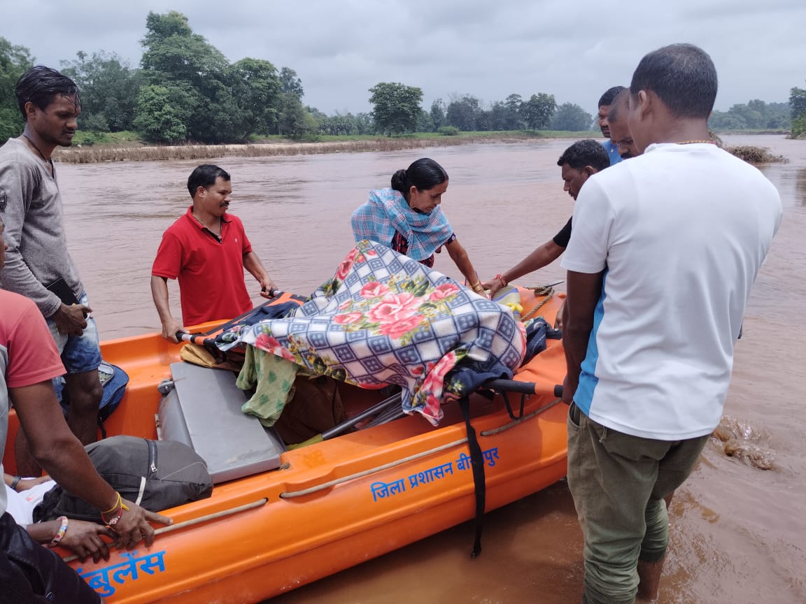 ब्रेकिंग बीजापुर @ नक्सल प्रभावित बीजापुर जिले में नगर सेना के जवानों ने एक बार फिर मानवता की मिसाल पेश की है। प्रसव पीड़ा से करहा रही गर्भवती को लाइफ सपोर्ट बोट के जरिए उफनती नदी को पार करा समय रहते अस्पताल पहुंचाया।