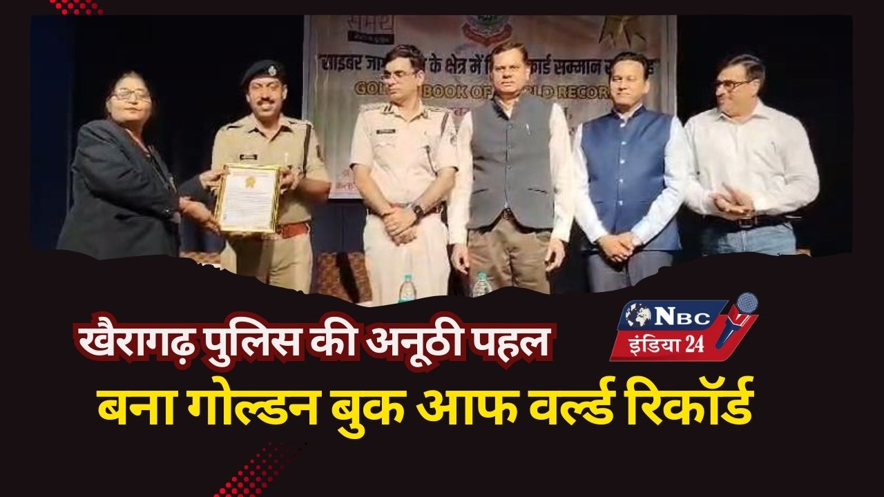 परमानंद रजक राजनांदगांव/ बढते साईबर अपराधो के रोकथाम के लिए खैरागढ़ पुलिस ने समर्थ अभियान के तहत जिले मे एक साथ 200 से अधिक जगहो मे साईबर जन जागरुकता अभियान चलाकर गोल्डन बुक आफ वर्ल्ड रिकार्ड मे अपना नाम दर्ज कराया है इसके तहत खैरागढ पुलिस ने एक हि दिन एक हि समय पर 200 से अधिक सेंटरो पर एक साथ साइबर जागरूकता अभियान चलाया गया । इस मौके पर खैरागढ के डा नरेन्द्र वर्मा आडिटोरियम मे एक कार्यक्रम आयोजित कर गोल्डन बुक आफ वर्ल्ड रिकार्ड की प्रदेश प्रभारी सोनल शर्मा ने खैरागढ पुलिस अधीक्षक त्रिलोक बसंल को सर्टिफिकेट सौपा है ।