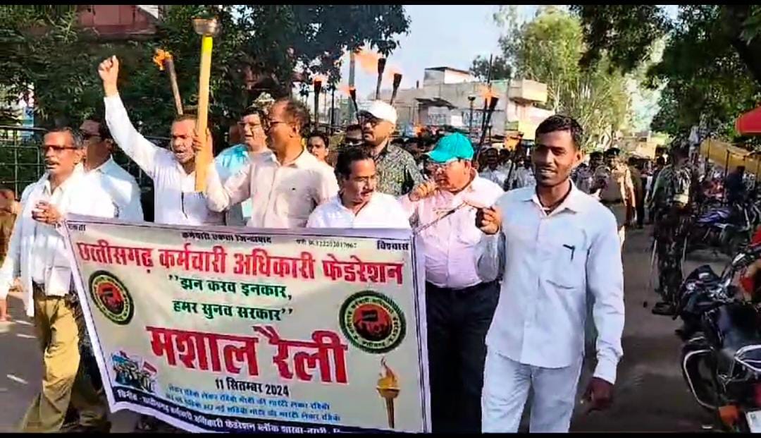 धमतरी /नगरी @ आज बुधवार को छग कर्मचारी अधिकारी फेडरेशन ब्लॉक नगरी ने ब्लॉक संयोजक डोमार सिंह ध्रुव के अगुवाई में विशाल मशाल रैली निकाली जो नगर के हृदय स्थल बजरंग चौक से प्रारंभ होकर अनुविभागीय अधिकारी राजस्व कार्यालय पहुंच कर चार सूत्रीय मांगों का ज्ञापन मुख्यमंत्री के नाम एस डीएम को सौंपा गया।