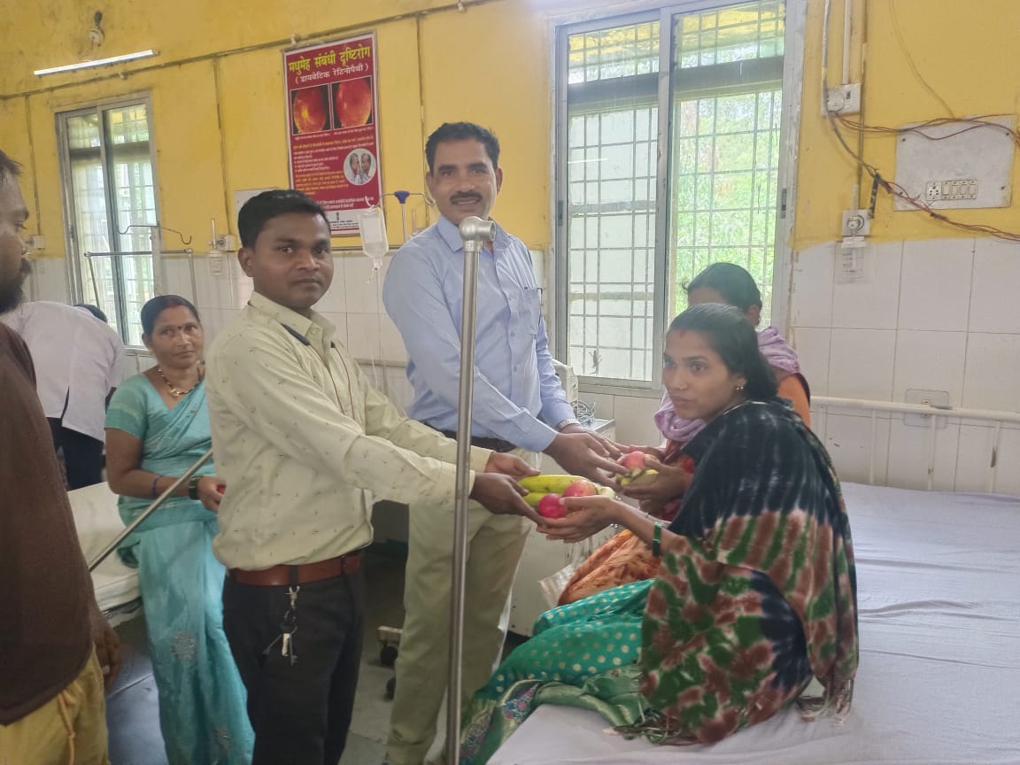 फरसगांव/विश्रामपुरी @ कोंडागांव जिले के विकासखंड बडे राजपुर ब्लॉक मुख्यालय विश्रामपुरी के तत्वाधान में आज 11.09.2024 बुधवार को सामुदायिक स्वास्थ्य केंद्र विश्रामपुरी में कोया ब्लड बैंक के 10,000 यूनिट रक्तदान पूर्ण होने के अवसर पर सर्व आदिवासी समाज युवा प्रभाग बड़े राजपुर की ओर से सामुदायिक स्वास्थ्य केंद्र विश्रामपुरी में मरीजों को फल एवं स्वल्पाहार वितरण का कार्यक्रम आयोजित किया गया था।
