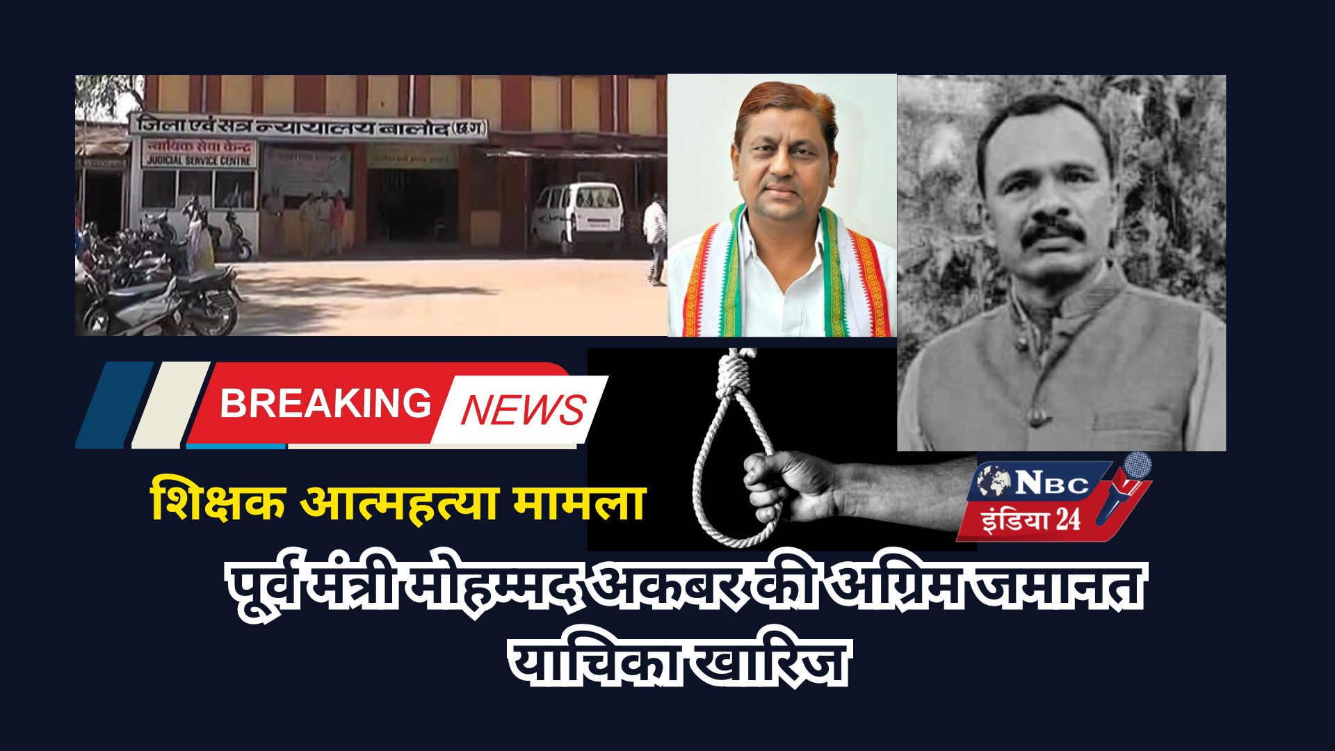 छत्तीसगढ़ के बालोद जिला से बड़ी खबर है जहां सत्र न्यायलय कोर्ट ने शिक्षक देवेंद्र ठाकुर आत्महत्या मामले में भूपेश सरकार में वन मंत्री रहे मोहम्मद अकबर की अग्रिम जमानत याचिका खारिज कर दिया है सत्र न्यायाधीश एस एल नवरत्न ने आदेश में उल्लेख किया है कि, प्रथम दृष्टया आवेदक (मोहम्मद अकबर) की संलिप्तता दर्शित होती है।