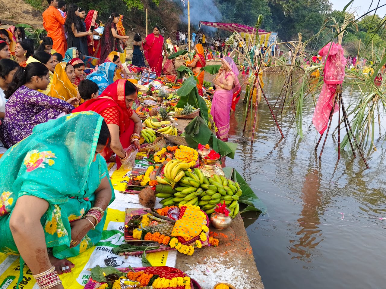 व्रती आपसी चंदा एकत्र कर घाट में करते है सजावट आदिवासी भी होते है पूजा में शामिल