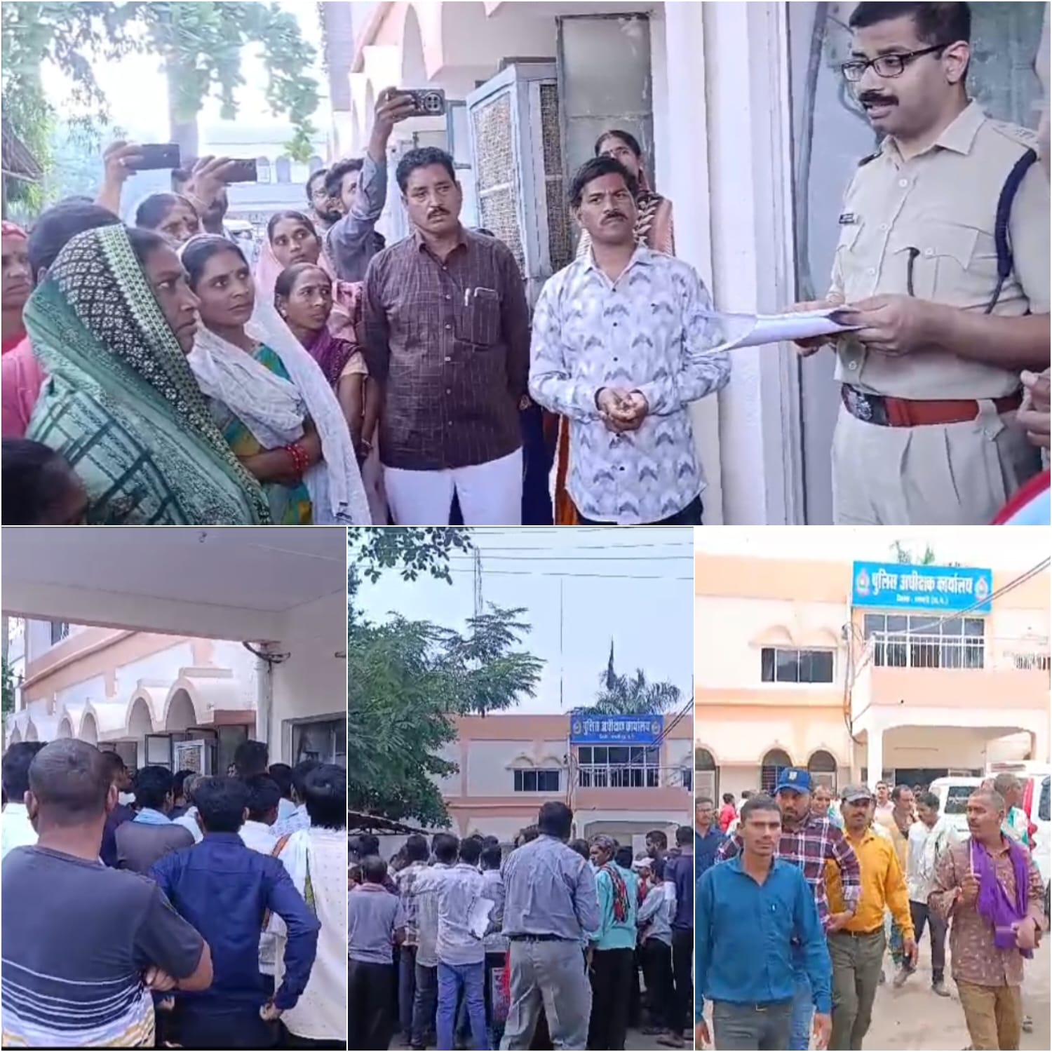 धमतरी @जिले के एस पी कार्यालय का साहू समाज ने बड़ी संख्या में पहुंचकर घेराव करने का प्रयास किया गया है .बता दें समाज के लोगों ने पुलिस पर आरोप लगाया गया है कि दबाव में आकर पुलिस कार्यवाही नहीं किया जा रहा है।दरअसल सोमवार को जिले के ग्राम नारी के साहू समाज के करीब ढेड़ सौ लोग आक्रोश में धमतरी के एस पी कार्यालय पहुंचे हुए थे ।
