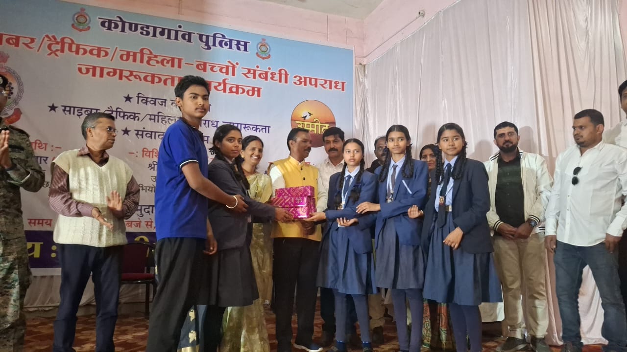 कोंडागांव @ जिले में उम्मीद सामाजिक संस्था और पुलिस प्रशासन ने मिलकर एक जागरूकता कार्यक्रम का आयोजन किया। यह कार्यक्रम फरसगांव के सामुदायिक भवन में हुआ, जहां साइबर सुरक्षा, यातायात नियम और महिला-बाल अपराधों जैसे महत्वपूर्ण मुद्दों पर चर्चा की गई… कार्यक्रम में अतिरिक्त पुलिस अधीक्षक (ऑप्स)रूपेश डांडे मुख्य अतिथि के रूप में उपस्थित रहे। जिला अभियोजन कोंडागांव के उप संचालक प्रदीप झा और फरसगांव के एसडीपीओ अनिल कुमार विश्वकर्मा विशिष्ट अतिथि के रूप में शामिल हुए। इस कार्यक्रम में छह विभिन्न स्कूलों के छात्रों ने भाग लिया।