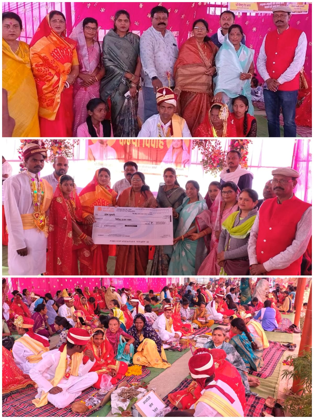 कार्यक्रम के मुख्य अतिथि सिहावा विधायक अंबिका मरकाम ने नव दंपतियों को अपना आशीर्वाद दिया। इस अवसर पर उन्होंने नव दंपतियों को 35 हजार का चेक भेटकर सम्मानित भी किया।इस कार्यक्रम में सिहावा विधायक अम्बिका मरकाम,सभापति महिला एवं बाल विकास सुलोचना साहू,नगर पंचायत अध्यक्ष आराधना शुक्ला,पूर्व जिला पंचायत सदस्य प्रेमलता नगवंशी, जिला पंचायत सदस्य मीणा बंजारे,कर्णेश्वर मंदिर ट्रस्ट अध्यक्ष विकल गुप्ता, पूर्व नगर पंचायत अध्यक्ष नागेंद्र शुक्ला,जनपद पंचायत अध्यक्ष दिनेश्वरी नेताम सहित सभी जनप्रतिनिधिगण,बड़ी संख्या में गणमान्य नागरिकगण उपस्थित थे।