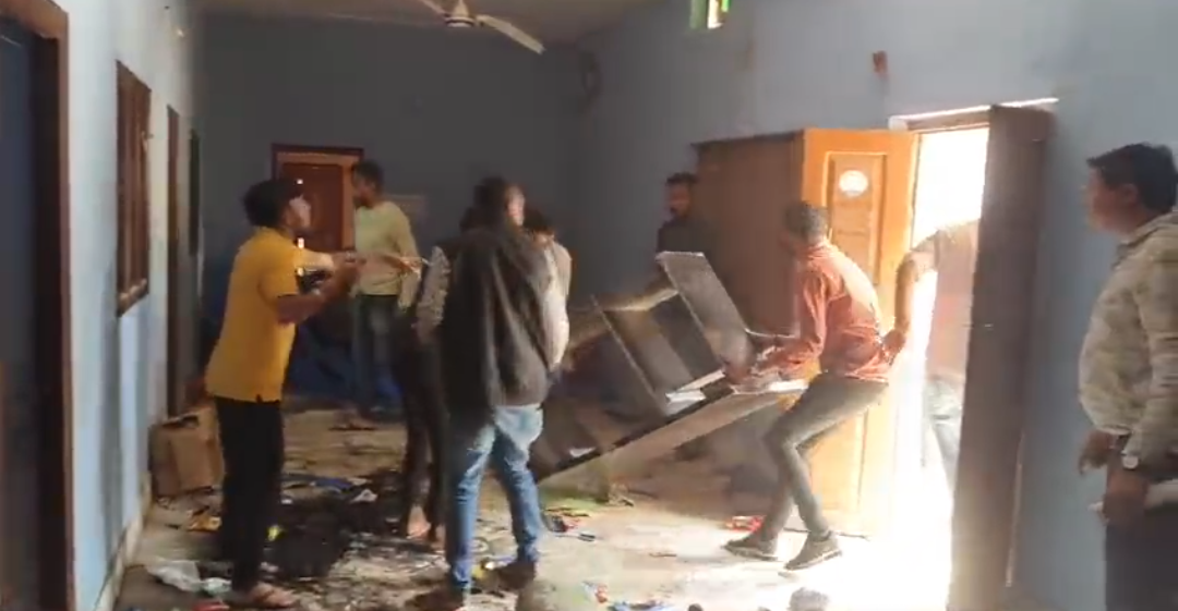 धमतरी @ नगरी में टिकट वितरण को लेकर भाजपा कार्यालय में हुआ जमकर हंगामा.नाराज कार्यकर्ताओं ने कुर्सी टेबल तोड़ फोड़ कर आग भी लगा दिया.