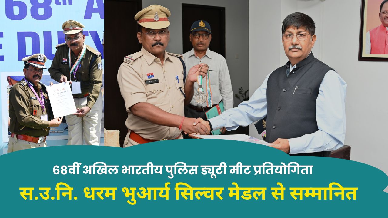 छत्तीसगढ़ 10 से 15 फरवरी 2025 तक झारखंड रांची में आयोजित हुए 68वीं अखिल भारतीय पुलिस ड्यूटी मीट प्रतियोगिता में बेहतर आब्जर्वेशन टेस्ट के लिए धरम भुआर्य को ऑल इंडिया पुलिस में द्वितीय स्थान (सिल्वर मेडल) प्राप्त हुआ। देश के सभी राज्यों की पुलिस एवं अर्धसैनिक बल इस प्रतियोगिता हिस्सा लिया था, (68th AIPDM24-25) राष्ट्रीय स्तर प्रतियोगिता में विभिन्न स्पर्धाओं के तहत टेस्ट हुई, जिसमें पुलिस विभाग द्वारा अपराध को सुलझाने के लिए की जाने वाली अनुसंधान/ विवेचना कार्य के अंतर्गत जिला बालोद में पदस्थ स.उ.नि. धरम भुआर्य द्वारा छत्तीसगढ़ पुलिस टीम को प्रतिनिधित्व करते हुए बतौर प्रतिभागी सांइटिफिक एड टू इन्वेस्टीगेशन में हिस्सा लिया गया। जिसमें बेहतर आब्जर्वेशन टेस्ट के लिए धरम भुआर्य को ऑल इंडिया पुलिस में द्वितीय स्थान (सिल्वर मेडल) से सम्मानित किया गया, उनके द्वारा छत्तीसगढ़ पुलिस को गौरवान्वित करने पर उनका उत्साहवर्धन करते हुए पुलिस महानिदेशक अरुण देव गौतम (भा.पु.से) द्वारा 5000/ नगद राशि एवं प्रशस्ति पत्र देकर सम्मानित किया गया।