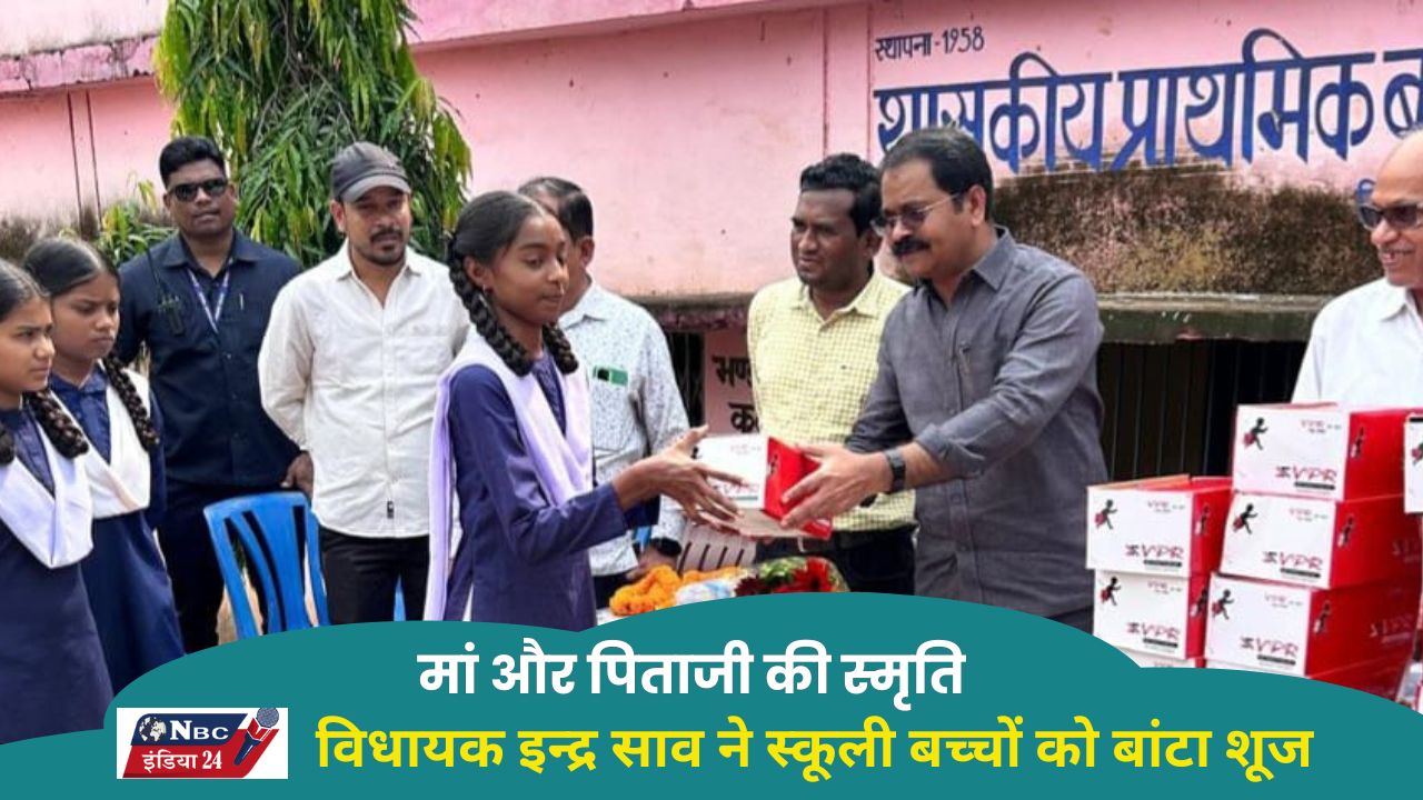 क्षेत्र के विधायक इन्द्र साव ने अपने माता पिता की स्मृति में शूज वितरण किया और अपने माता पिता को याद करते हुए अपने स्कूल के दिनों की दिनचर्या को बच्चों और उपस्थित शिक्षकों के मध्य साझा किया।विधायक की बाते सुन स्कूली बच्चे काफी आनंदित हुए। इस अवसर पर पूर्व सांसद प्रतिनिधि ईश्वर सिंह ठाकुर, ब्लॉक कॉंग्रेस अध्यक्ष अशोक ध्रुव, पार्षद गेंदू साहू, मास्टर ट्रेनर सत्यजीत शेंडे, एन एस यू आई जिलाध्यक्ष विवेक यदु , प्राचार्य के.एल. वर्मा , स्कूल स्टॉफ सहित छात्र छात्राएं उपस्थित थे।