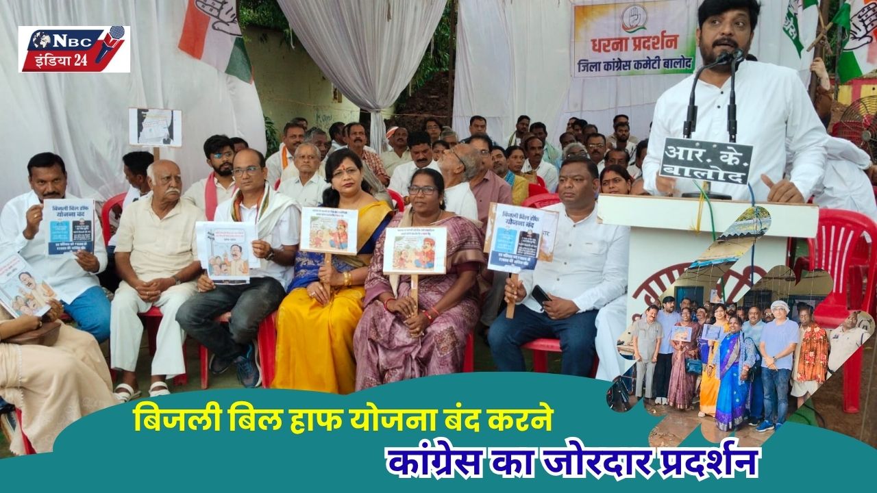 बालोद/ छत्तीसगढ़ प्रदेश कांग्रेस कमेटी के निर्देशानुसार जिला कांग्रेस कमेटी बालोद ने प्रदेश की भाजपा सरकार द्वारा बिजली बिल हाफ योजना के 400 यूनिट की सीमा को समाप्त कर 100 यूनिट किए जाने के विरोध में एक दिवसीय धरना प्रदर्शन और पुतला दहन किया। इस कार्यक्रम में जिलेभर से कांग्रेस कार्यकर्ता बालोद जिला मुख्यालय में बिजली ऑफिस के पास एकत्रित हुए।