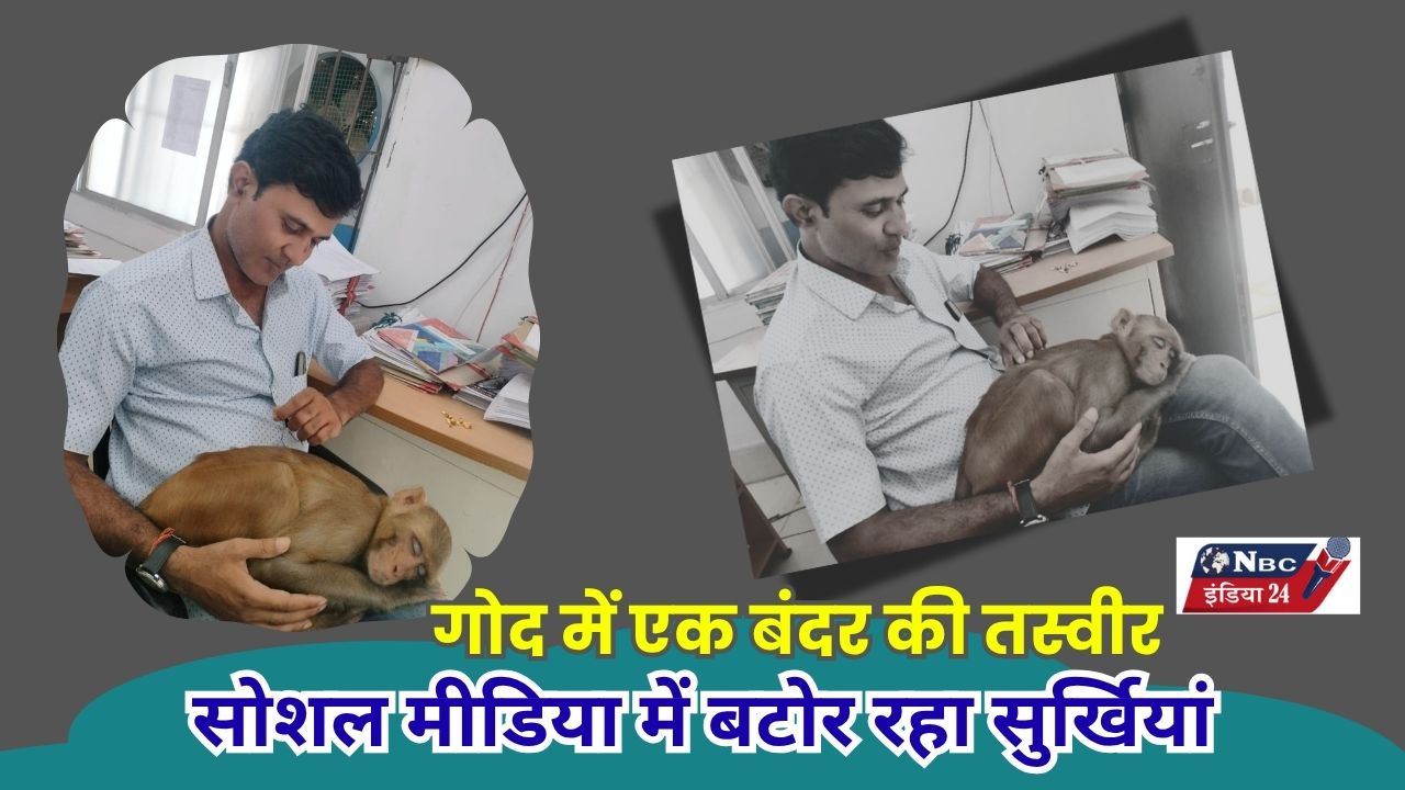 पुलिस आरक्षक की गोद में बैठकर मस्ती करता दिखा बंदर