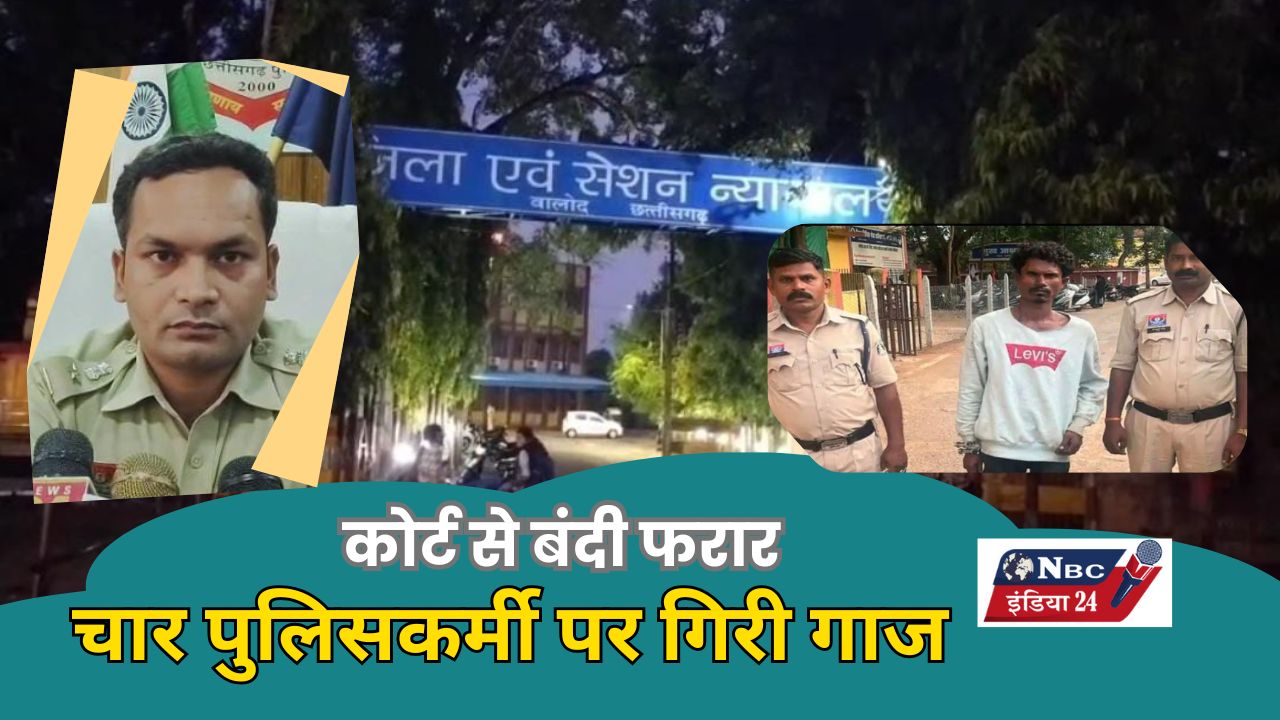 बालोद जिले में एक बड़ी लापरवाही सामने आई है, जहां कोर्ट में पेशी के लिए लाए गए एक बंदी के भाग जाने के मामले में एक प्रधान आरक्षक और तीन आरक्षकों को निलंबित कर दिया गया है। यह कार्रवाई पुलिस अधीक्षक योगेश कुमार पटेल ने पेशी ड्यूटी के दौरान लापरवाही और उदासीनता बरतने के आरोप में की है।