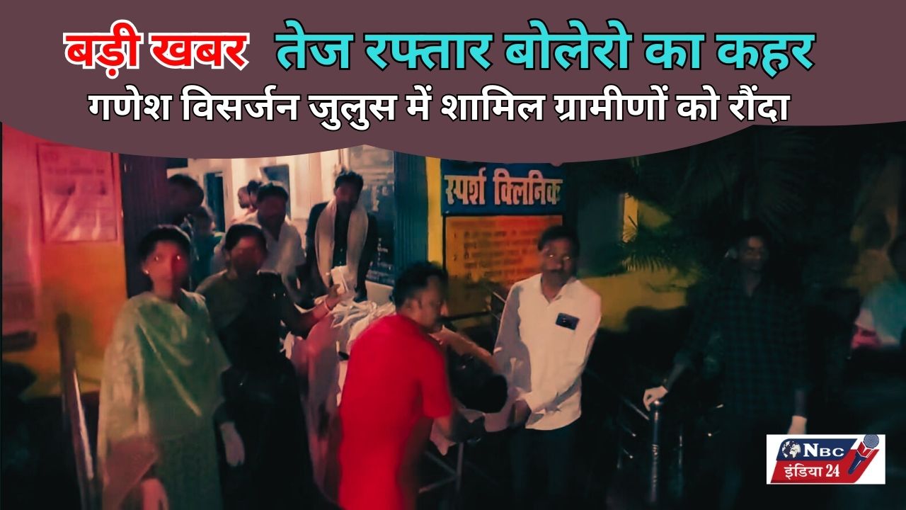 छत्तीसगढ़ के जशपुर जिले में गणेश विसर्जन के दौरान एक दर्दनाक हादसा हुआ। बगीचा थाने के जुरूडांड़ में एक तेज रफ्तार बोलेरो ने विसर्जन जुलूस में शामिल ग्रामीणों को रौंद दिया, जिससे 3 लोगों की मौत हो गई और 20 से अधिक लोग घायल हो गए। घायलों को बगीचा अस्पताल में भर्ती कराया गया है, जहां गंभीर रूप से घायलों को अंबिकापुर रेफर किया जा रहा है।