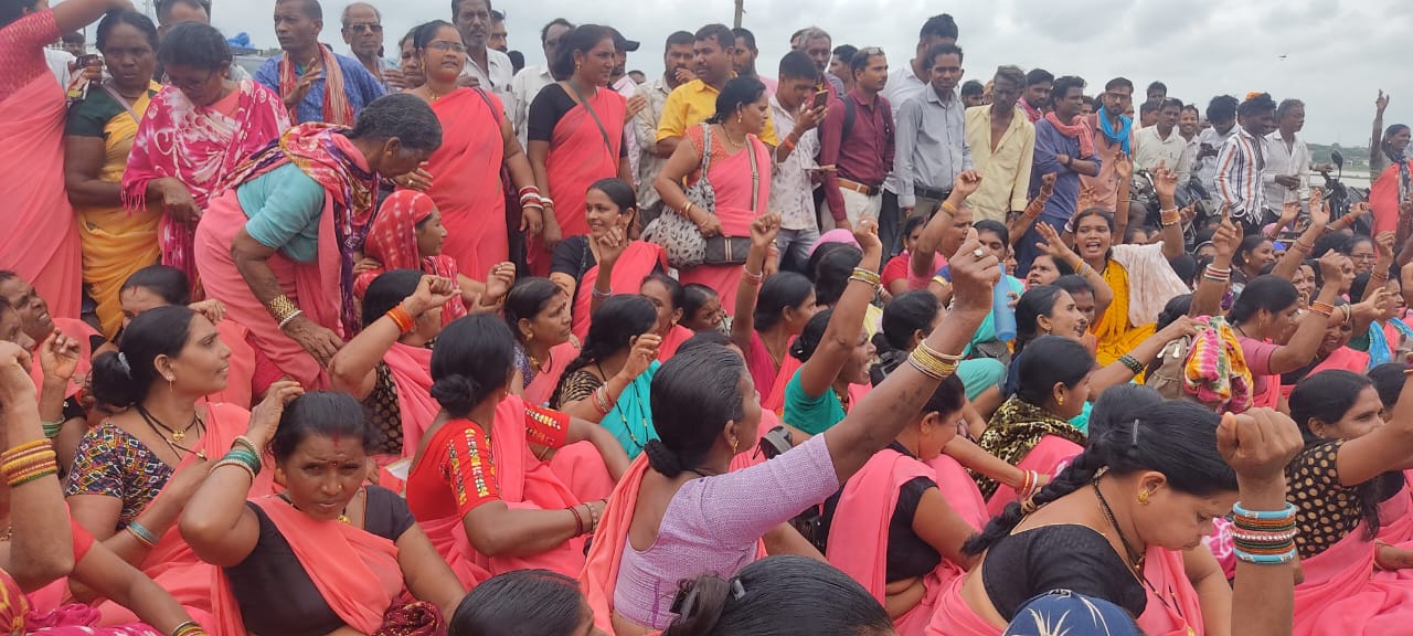तिरंगा चौक में नेशनल हाईवे में बैठकर कर रहे है प्रदर्शन.आंदोलन के लिए रायपुर जा रही मितानिनों को रोकने से मितानिनों में है, नाराजगी.मितानिनों को पुलिस प्रशासन समझाइए देने में जूटा.दोनों और वाहनों की लंबी कतारे.नेशनल हाईवे पर खड़े होकर शासन प्रशासन के खिलाफ कर रही है नारेबाजी.