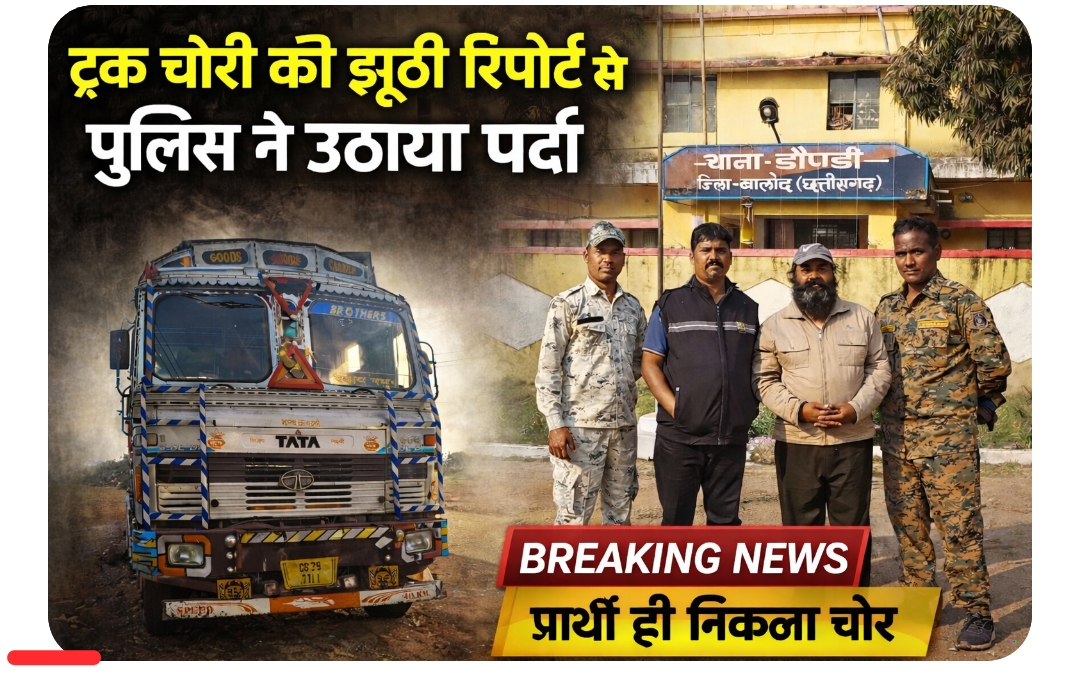 मामला 26 जनवरी 2026 का है, जब डौण्डी थाने में एक व्यक्ति ने रिपोर्ट दर्ज कराई कि उसका ट्रक CG 21 J 7111 22 जनवरी की रात अज्ञात चोरों द्वारा चोरी कर लिया गया है। मामला दर्ज होते ही पुलिस हरकत में आई।